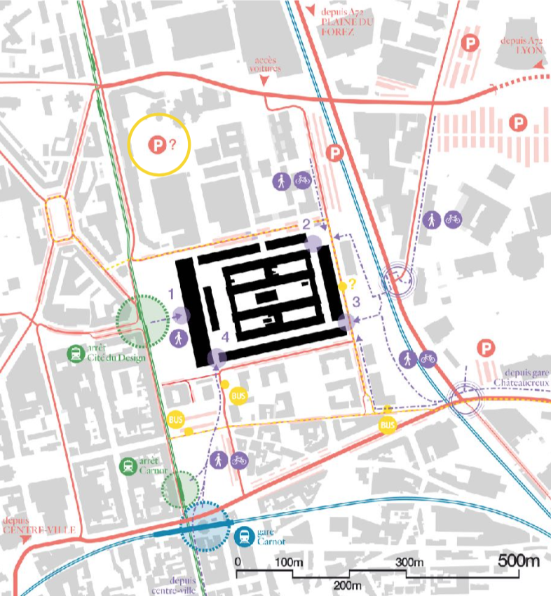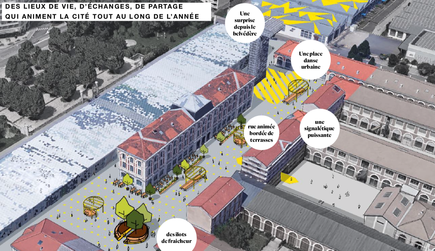 Le quartier de l'ancienne Manufacture nationale d’armes de Saint-Etienne est un des coeurs qui doit incarner la Ville du Design de L’Unesco. Le projet de réaménagement, porté par Saint-Etienne Métropole, consiste à transformer et à redynamiser le secteur pour en faire un quartier vivant, démonstrateur et créatif; un lieu unique en France et en Europe, au croisement des Arts, du design et de l’urbain. L’aménagement de la Cité du Design 2025 est le levier d’une stratégie territoriale qui, tout en respectant l’histoire du site et son patrimoine, se projette naturellement dans l’avenir de la ville et de ses usages. Dans le cadre de notre mission, nous avons réalisé le diagnostic urbain du site, avec pour finalité l'élaboration du "livre-blanc", qui fixe les grandes intentions en terme d'aménagements extérieurs et d'identité de quartier. Maître d’ouvrage : Saint-Étienne Métropole Maître d’œuvre : AJ architectes Saguez & Partners, Cité Services, BOA Lighting Type de mission : Études DIAG Études : 2022 ![]() ![]() ![]() ![]() ![]() ![]() |