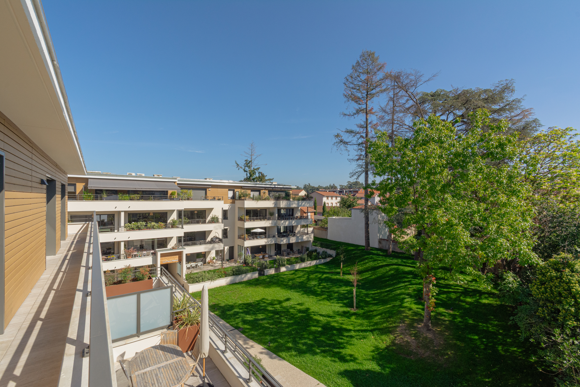 La disposition intérieure du logement est prolongée par l’épaisseur des transitions vers l’espace extérieur, vers la nature préservée du parc, qui nous ressource. C’est la qualité architecturale de ces transitions et de ces prolongements, qui transforme le logement en habitat.